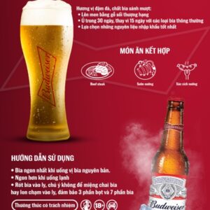 Loại bia: Lager Nồng độ cồn: 5.0% Dung tích: Thùng 24 Lon: 330ml x 24 lon Xuất xứ: Mỹ Nơi sản xuất: Việt Nam Hạn sử dụng: 12 tháng kể từ ngày sản xuất (in trên bao bì) Budweiser – 01 Chất Lượng Thượng Hạng. Trên 80 Quốc Gia Được biết đến như “The King of Beers”, Budweiser lần đầu tiên được giới thiệu bởi ông Adolphus Busch vào năm 1876. Trong suốt thời gian phát triển, Budweiser luôn trường tồn với thời gian cùng những sản phẩm tuyệt hảo, với chất lượng đồng nhất trên toàn thế giới, một minh chứng lịch sử của sự đổi mới không ngừng và một cá tính mạnh mẽ – cả hai đều là biểu tượng hoàn hảo của giấc mơ Mỹ – American Dream. Chính mối liên hệ chặt chẽ giữa Budweiser và câu chuyện lịch sử của Mỹ đã biến nhãn bia này trở thành biểu tượng toàn cầu và truyền cảm hứng cho những quốc gia loại bia tuyệt hảo này đến mọi người #Budweiser #budweiser #biacaocấp #Bia #Biamy #biachinhhang